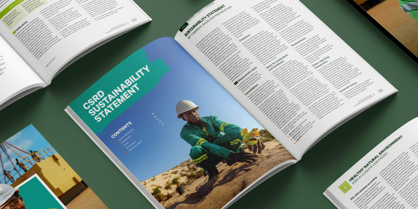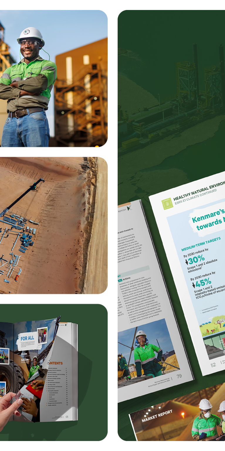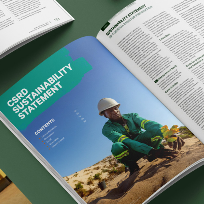 Kenmare Resources’ 2024 Annual Report sets a new benchmark for how small-cap companies can integrate complex regulation with clarity and confidence. As one of the first in its category to adopt the Corporate Sustainability Reporting Directive (CSRD), Kenmare chose not to append compliance but to embed it within the core of its printed report. Through close collaboration between content and design teams, we introduced an intuitive CSRD Index system, visualised double materiality with a clear heat map, and redesigned the business model and value chain spreads to align with ESRS standards. Every disclosure was traceable, accessible and strategically placed without inflating the document. The result is a refined, multi-audience report that blends creativity with compliance. It has been praised by regulators, analysts and internal stakeholders alike, and has helped position Kenmare as a responsible, forward-looking small-cap with a clear purpose and a confident voice in a changing regulatory landscape.